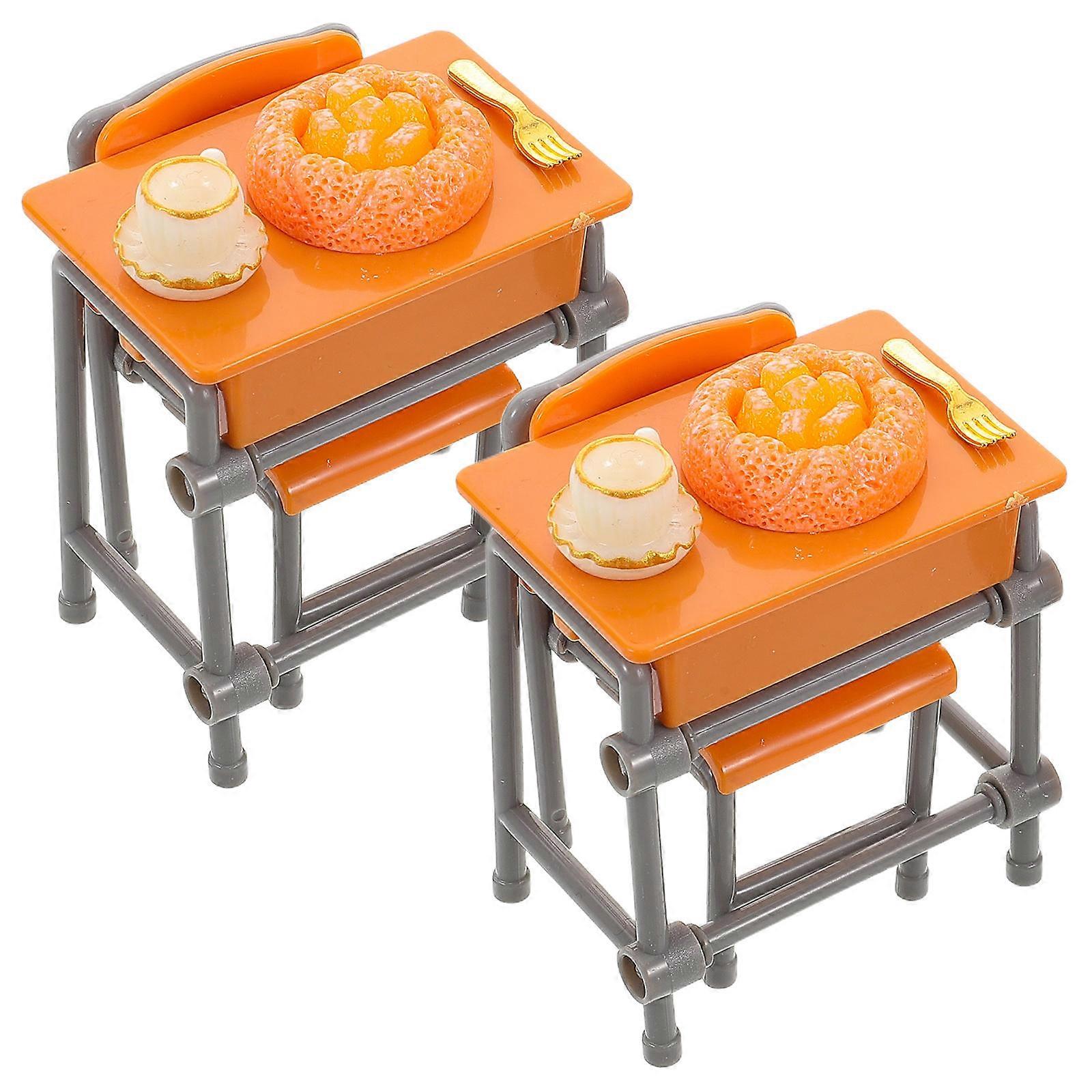 Tiny Desk Model Mini Desk Chair Set for Dollhouse Use 2Sets Assorted Colors