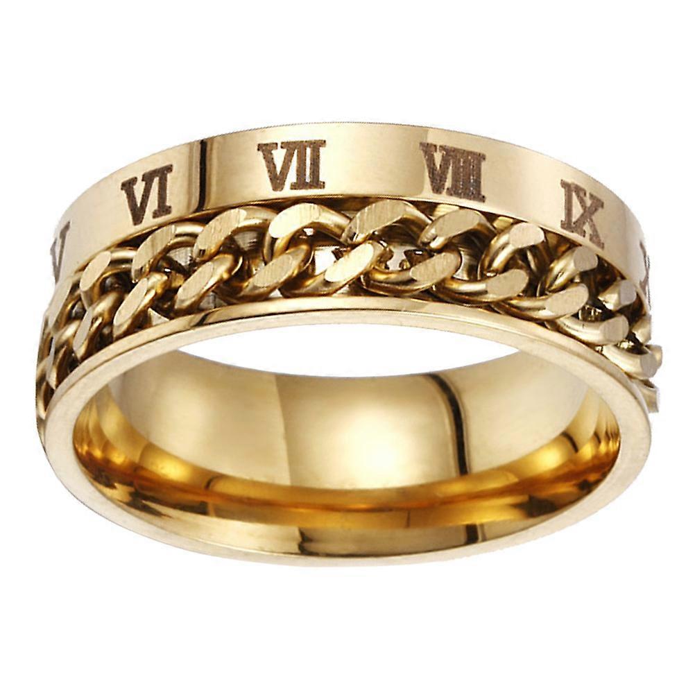 Titanium Steel Ring with Roman Numerals Golden Color for Decoration Comfortable and Durable Size 10