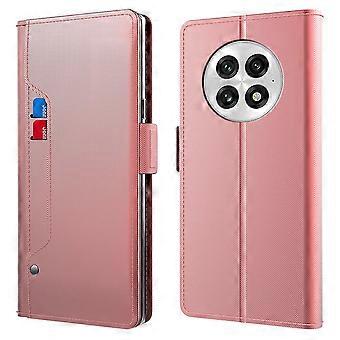 TKdaddy ل OnePlus 13 حالة حامل PU جلد غطاء الهاتف حامل بطاقة مرآة ذهبي وردي