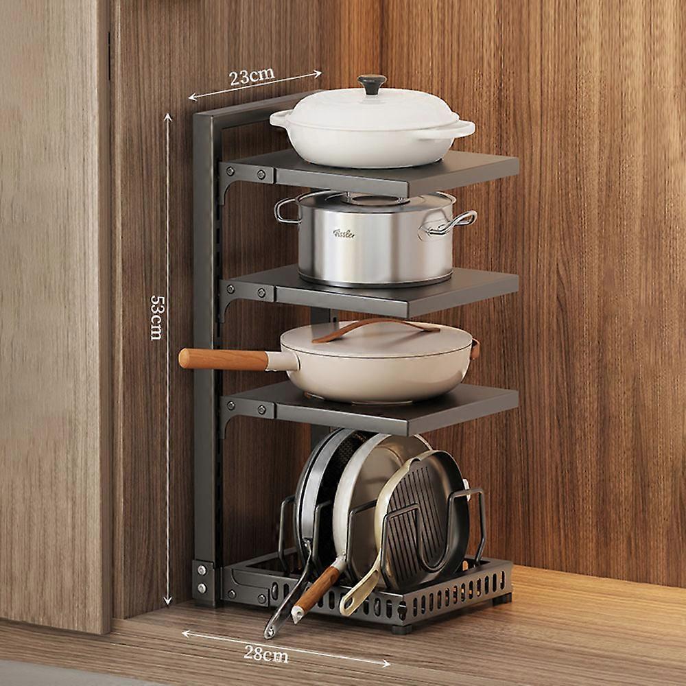 TKdaddy 4 Tiers Kitchen Pot Rack Organizer Adjustable Height Carbon Steel Storage Shelf Cookware Holder Black