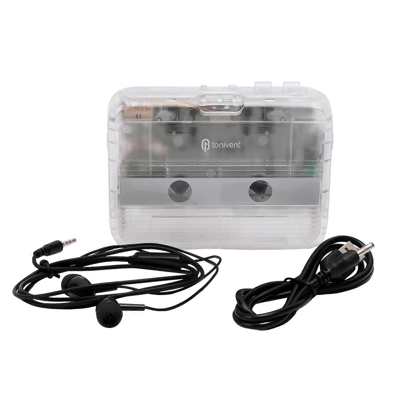 TONIVENT Portable BT Cassette Player Stereo Auto Reverse Mini Transparent Tape Player & FM Radio with 3.5mm AUX Input Adjustable Volume for Home Scho