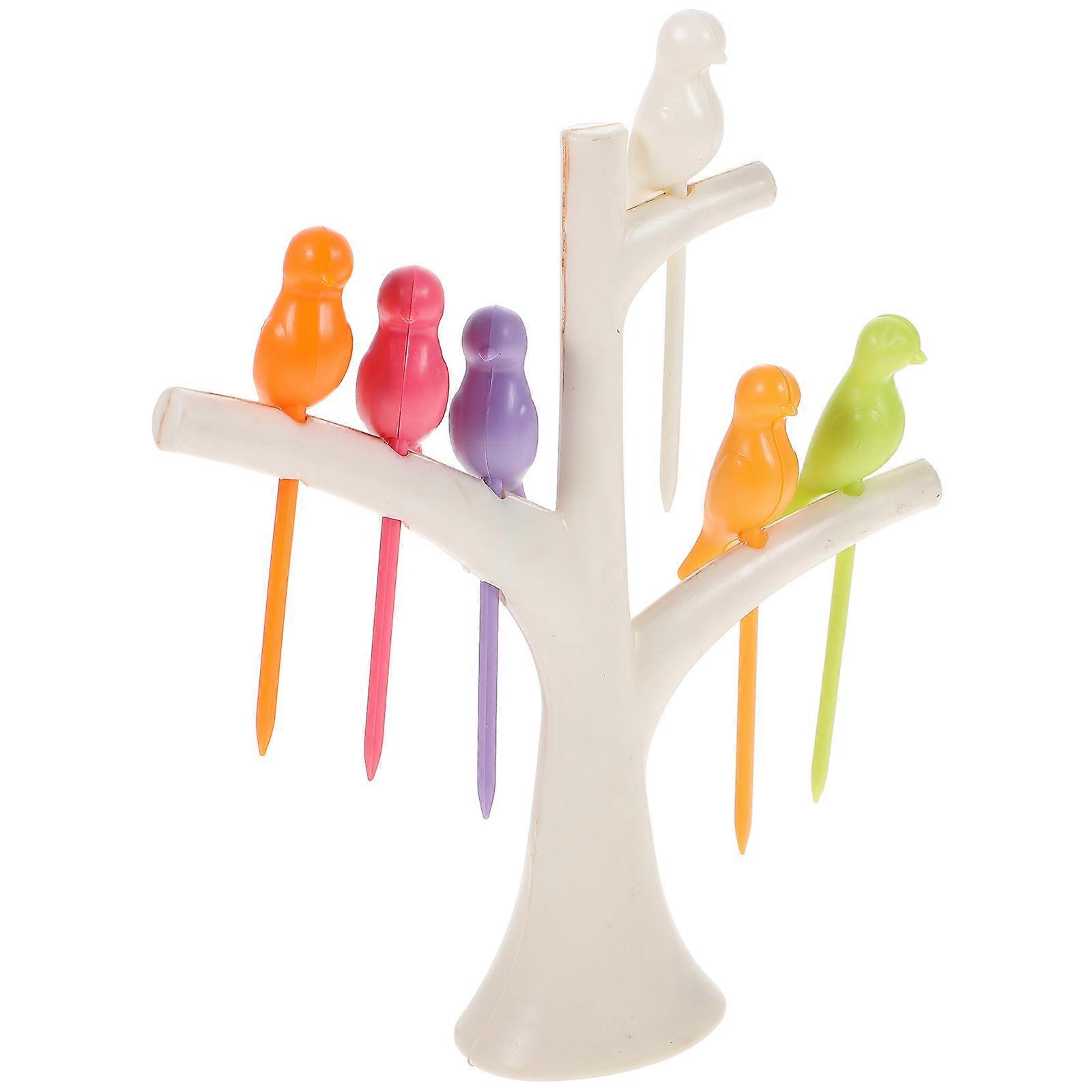 Toothpick Fruit Fork in Tree and Bird Shapes 2pcs White