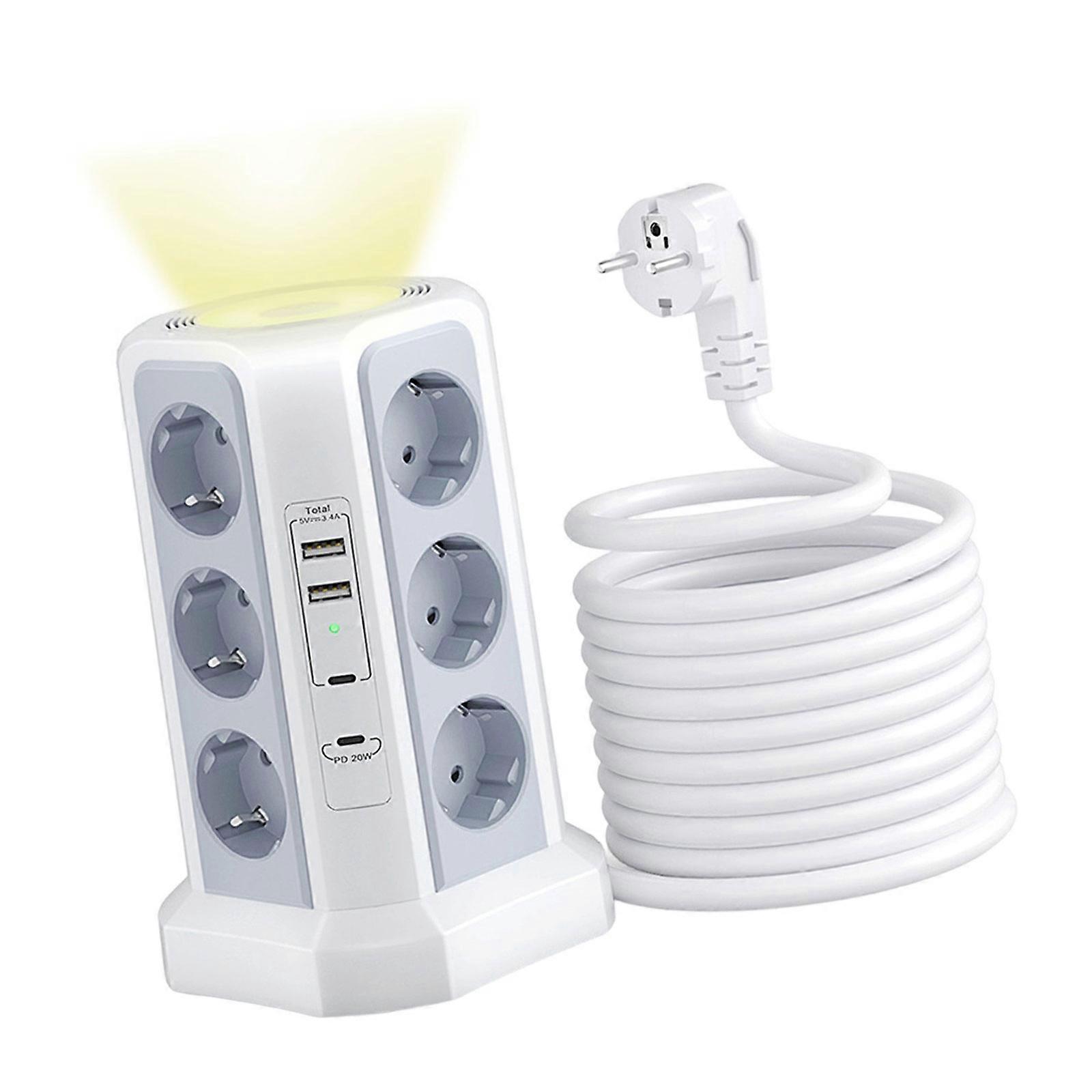 Features: Equipped with 12 outlets and 5 USB port, this power strips caters to your charging needs. Make from ABS and PC fire retardant, this power strips prioritizes safety. The coppers extension cord offers reliable power transmission. Features surge and overloads protections to protect your devices. It can automatically shut down the power when overloaded which can protect the devices immediately. Specifications: Component: ABS and PC Type: Black Regular Type/Gray White Regular Type/Black Fast Charging Type/White Fast Charging Type/Black Color Night Lamp Type/White Color Night Lamp Type Size: about 12x12x24cm/4.72x4.72x9.45inch Number of socket: 12 Number of USB port: 5 Current: 10Amp voltages: 250V Power: 2500W Package Includes: 1pc Tower Multiple Power strips note: Please allow 1-2cm errors due to manual measurement, make sure that you do not mind before you order. Due to difference between different monitors, the picture may not reflect the actual color.