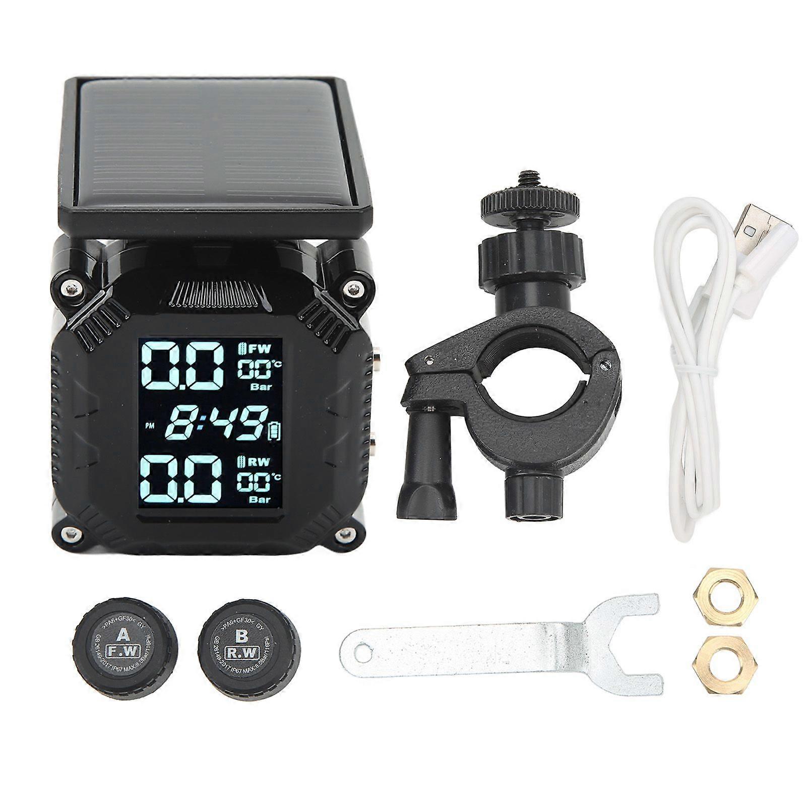 TPMS wireless for motorcycle with solar charging and 2 sensors
