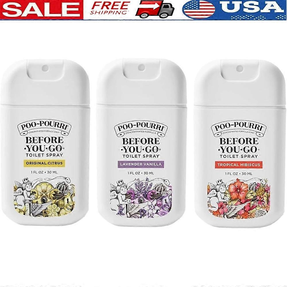 Travel Size Toilet Spray Set 3 Pack Odor Eliminator with Essential Oils Funk Lock Technology Home and On-the-Go Use