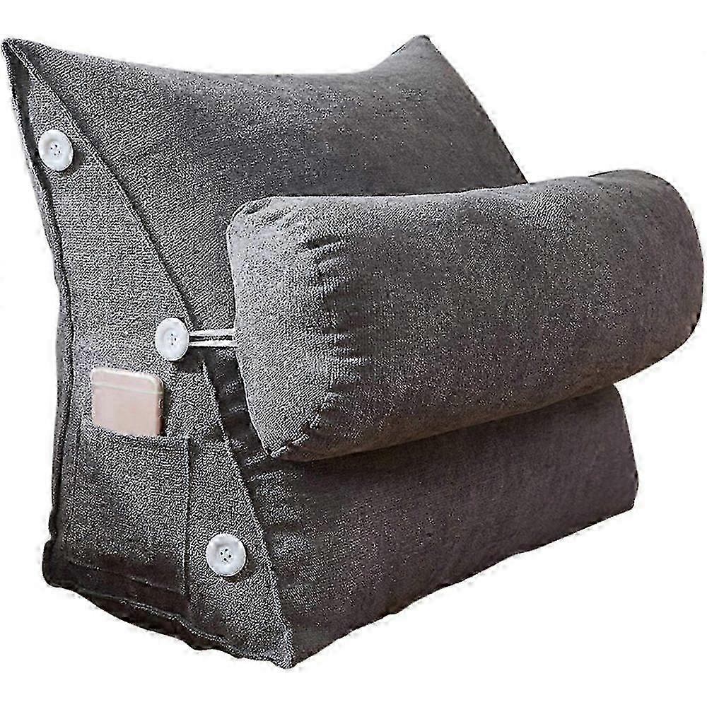 Triangular wedge pillow, reading pillow, back pillow with removable neck roll and side pockets, back pillow, backrest for the office, reading or miao4