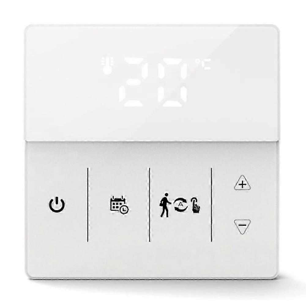 1.WiFi Screen Thermostat:The wifi gas boiler&water electric floor heating thermostat is designed with Press screen and ultra-thin body for wall mounted.Simply connect the thermostat to the gas boiler or underfloor water/electric heating system for normal use with power off memory.(Note:The thermostat is designed for gas boiler and underfloor water /electric heating system,please confirm your device before placing an order.) There are two types of the thermostat:One is for gas boiler and underfloor water heating system as ,and the other is for underfloor electric heating system as GB. 2.Smart Home Compatible:Working with Alexa Home,this new thermostat offers the most comfortable temperature for your house when your hands are not free by using voice for its maximum convenience. 3.Smart Phone Remote Control:Remotely control your home temperature to attain advanced comfort via your Smart App,easy to operate on your smart phones anywhere you are.And you can even remotely lock the thermostat so no changes can be made. 4.Weekly Programmable with backlight sleep brightness adjustable:Supports full auto programming mode or manual set up for temporary manual mode with 6+1,5+2 and weekly schedule of 6 times period,providing you with the maximum convenience for different situation.Data memory when power is off.Besides,there is holiday mode is optional to enjoy more comfortable temperature in holidays;Simply adjust the backlight brightness for comfort sleep at night. 5.Family Sharing and Open Window Detection:Device share to your family members to control your house temperature via smart phone App together.All can enjoy the advanced comfort of the temperature. Model: 16A Material:plastic colour:White Package Contents: 1 * Smart Thermostat Only the above package content, other products are not included. Note: Light and different displays may cause the color of the item in the picture a little different from the real thing. The measurement allowed error is +/- 1-3cm.