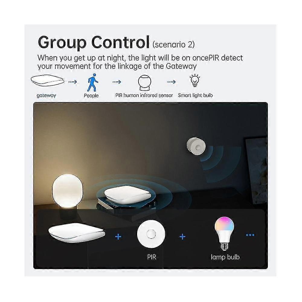 [Zigbee/Bluetooth]-2 in 1 Gateway have combine zigbee and bluetooth gateway into one device [Gateway Connection]-Button until the white light and blue light flash alternately, connect to the phone [APP Remote Control]-Control sub device under the gateway anywhere,anytime [Vocie Control]-Simply give a voice to Alexa or Google Home to control your devices. [Quickly Define Your Smart Life Scene]-Freely combine gateways and different components to realize the automation of smart devices in the whole home [Group Control(scenario 1)]-Door sensor installed on the door, When opening the door automatically open the curtains and air conditioners [Group Control(scenario 2)]-When you get up at night, the light will be on oncePIR detect your movement for the linkage of the Gateway SPECIFICATION Standby quantity: 45 deviceS Coverage Distance: 30 Meters Size: 100 x 85 x 23mm Adaptor Output: 5V DC/1A Working Current: Less than 1A Working Temperature: -20-45 ZigBee Protocol: 802.15.4 Wireless Protocol: 802.11 b/g Color: White Material: plastic Package Contents: 1 x Smart Gateway Hub 1 x USB Cable 1 x User Manual Only the above package content, other products are not included. Note: Light reflection and different displays may cause the color of the item in the picture a little different from the real thing. The measurement allowed error is +/- 1-3cm.