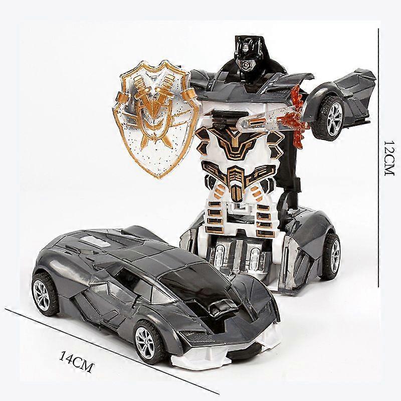 (Two Pieces) Collision Deformation Toy Car Autobot Robot Inertia Impact One Button Deformation Car Boy Gift (New Rambo Gray Color Box)