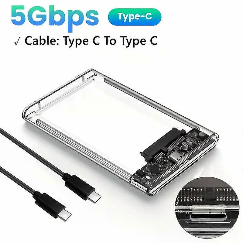 Ultra-Fast USB/Type C to SATA Hard Drive Enclosure - 5Gbps UASP Compatible with 2.5-Inch HDD/SSD for PC Mac Laptops and Desktop
