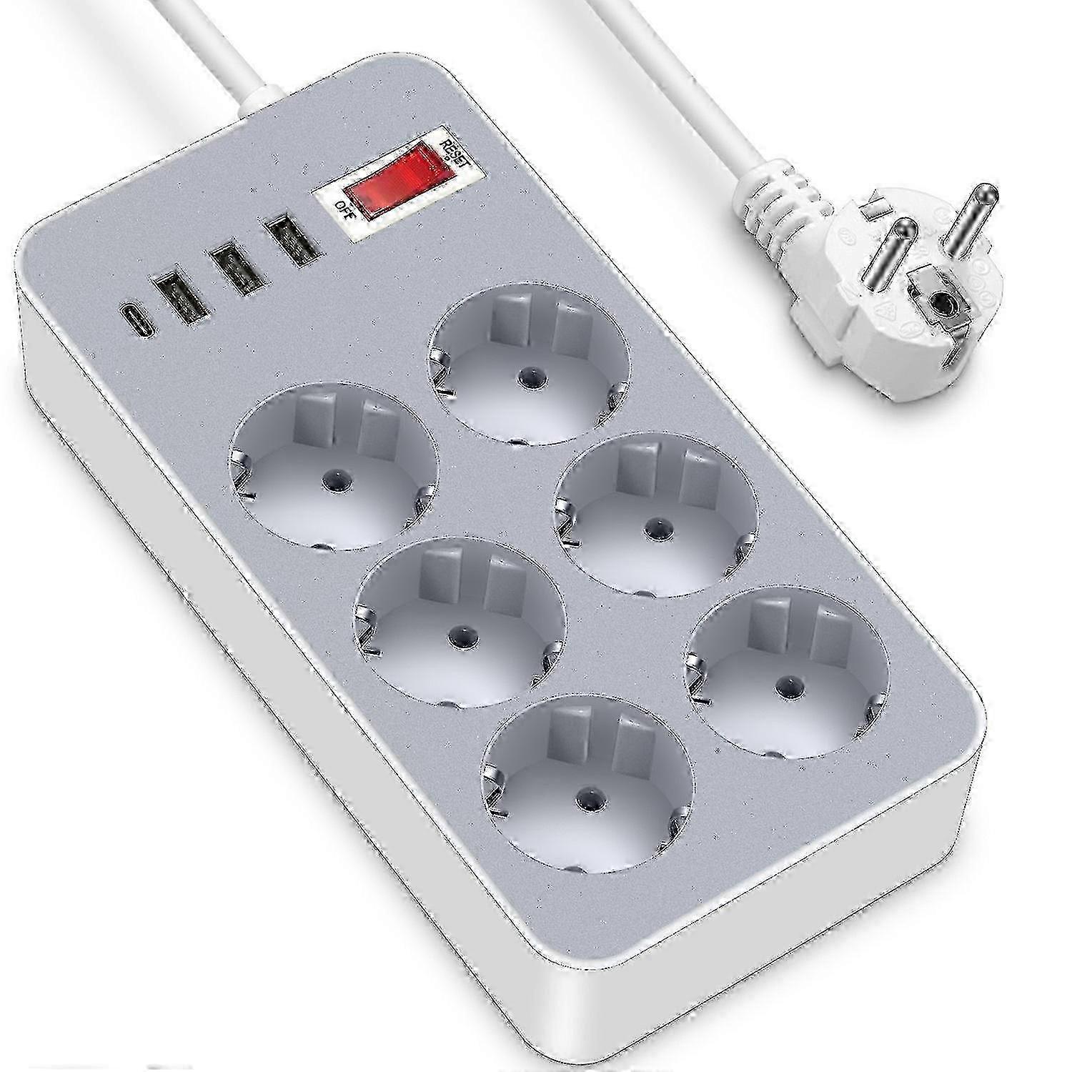 UN-106 EU Plug Power Strip Button Switch Power Socket with 6 AC Outlets 3 USB 1 Type-C Edition 0809