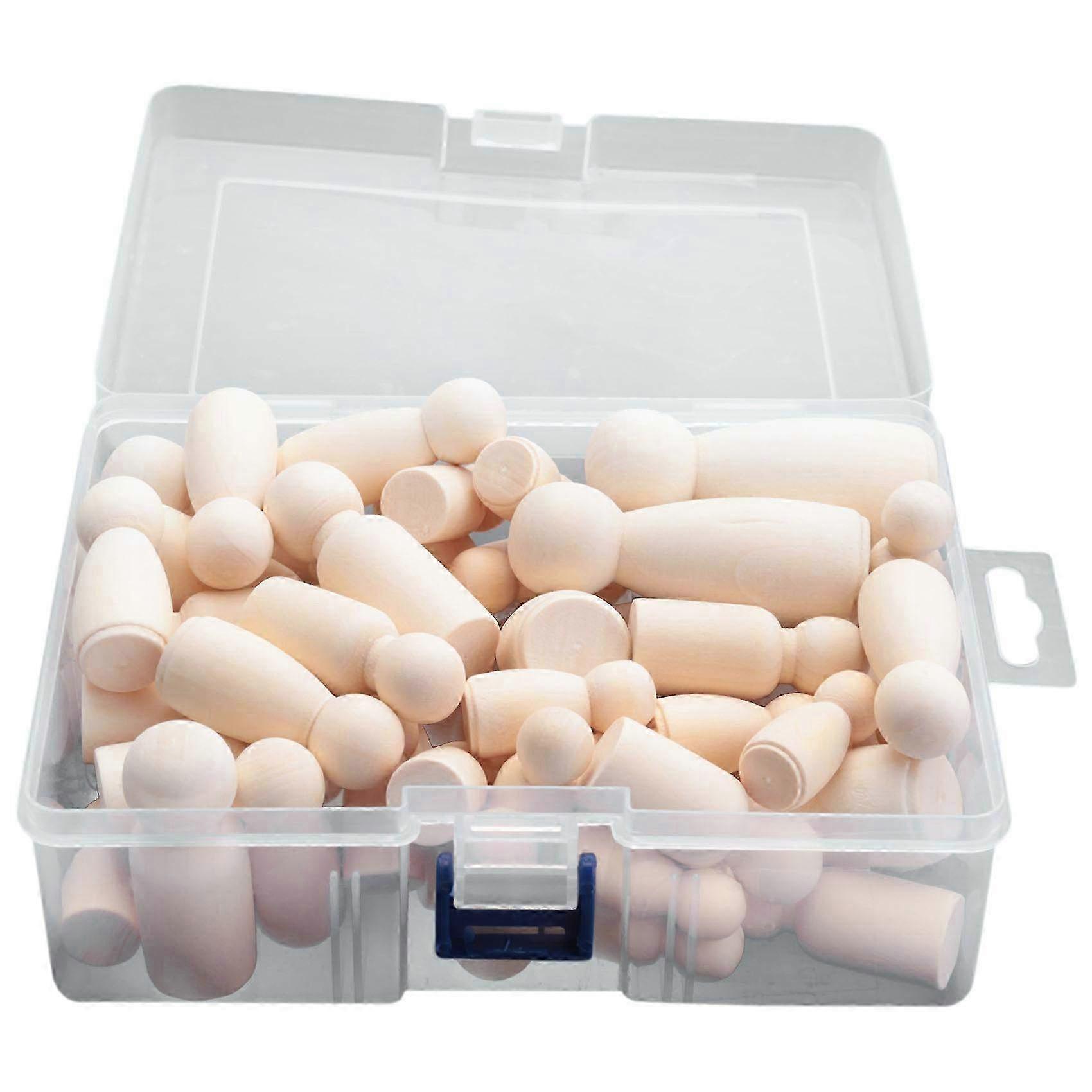 Unfinished Decorative Wooden Dolls Set - 56 Pcs DIY Craft Figures with Hats for Creative Projects & Customization