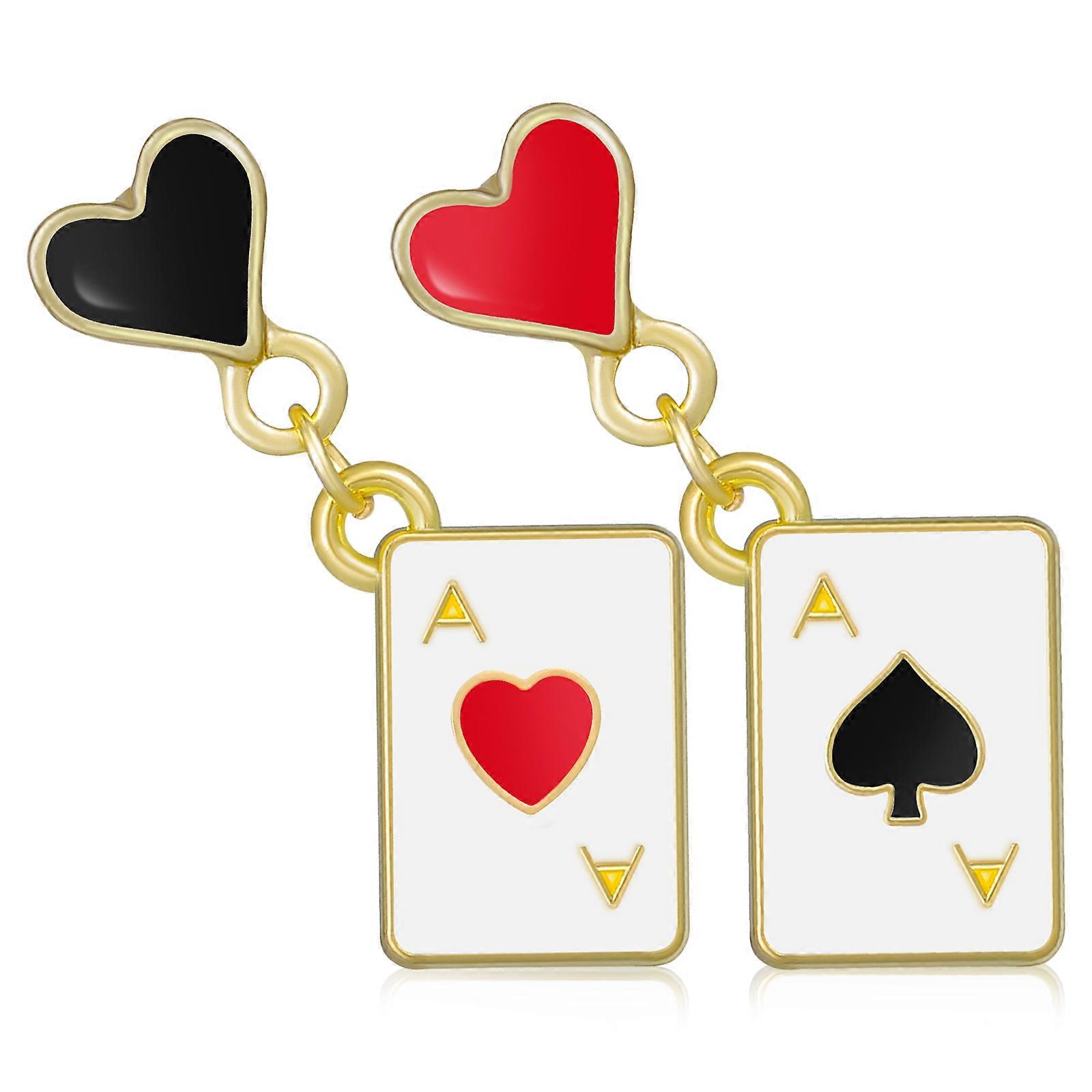 Unique Playing Card Dangle Earrings for Women Heart Drop 2Pairs