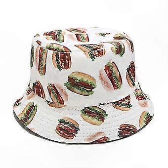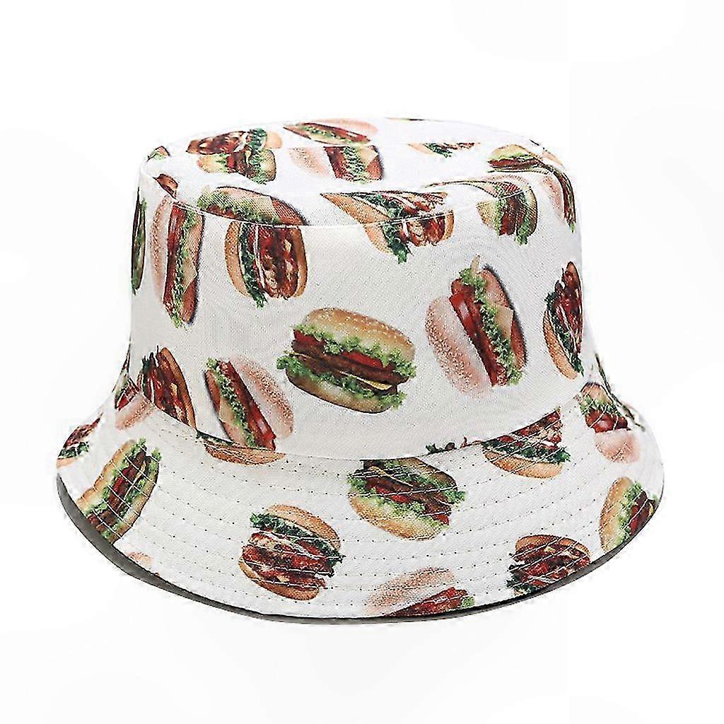 Unisex Reversible Bucket Hat with Wide Brim, 3D Food Print Featuring Sushi and Hamburger Themes