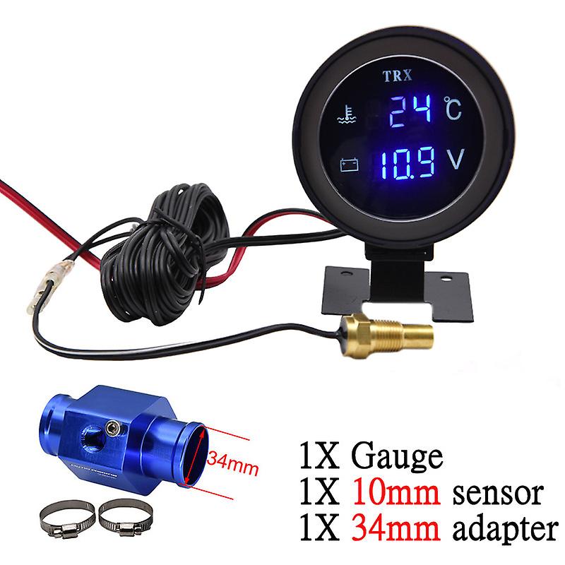 Universal 2 In 1 Car Round Lcd Digital Water Temperature Gauge With Water Temp Joint Pipe Sensor 10mm Adapter Voltmeter 12v/24v