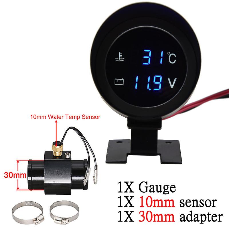 Universal 2 In 1 Car Round Lcd Digital Water Temperature Gauge With Water Temp Joint Pipe Sensor 10mm Adapter Voltmeter 12v/24v