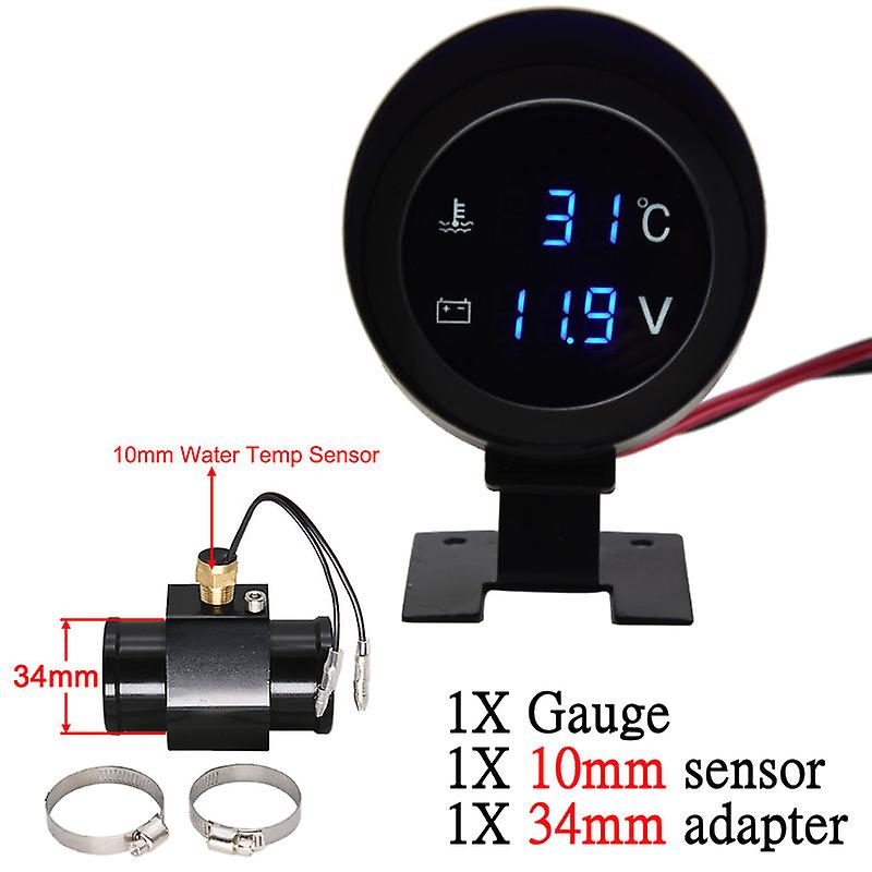Universal 2 In 1 Car Round Lcd Digital Water Temperature Gauge With Water Temp Joint Pipe Sensor 10mm Adapter Voltmeter 12v/24v