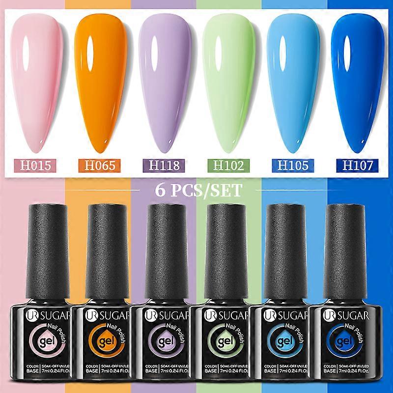 UR SUGAR 6Pcs/Set Autumn Brown Wine Red Color Gel Nail Polish Kit UV LED Gel Semi Permanent Nail Art Design Hybrid Manicure Kit