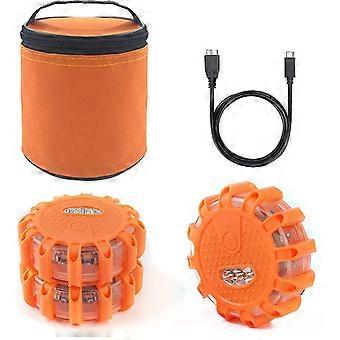 Usb Rechargeable Led Road Flares Emergency Lights-roadside Warning Car Safety Beacon Flashing Disc Flare Kit With Magnetic Base For Vehicles & B-XinHa