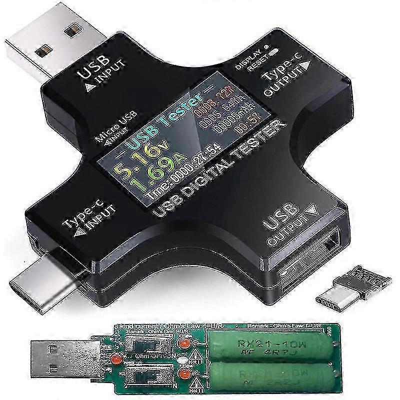 Usb C Tester,2 In 1 Type C Usb Tester Color Screen Ips Digital Multimeter,voltage,current,power,tem