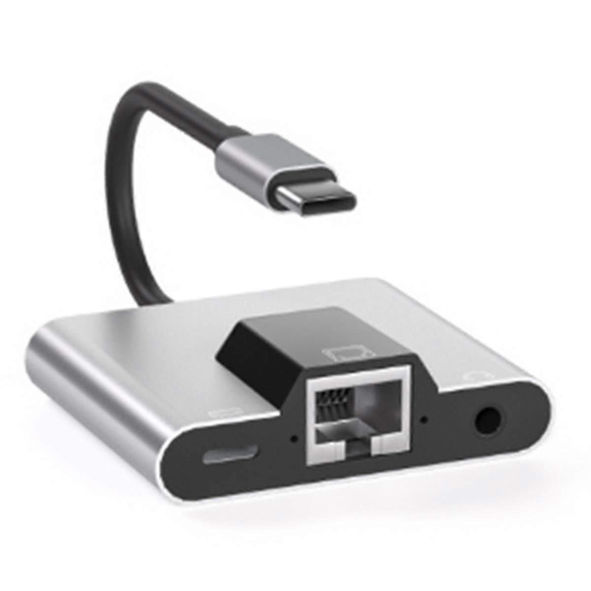 USB C Hub with Ethernet LAN Adapter, 3.5mm Audio Jack, and PD Fast Charging - Type-C Docking Station for Laptops & Tablets
