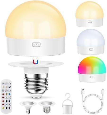 USB Rechargeable Light Bulb with Remote Control, Dimmable Colour Bulbs with Timing, Detachable RGB LED Bulb with E27 & E14 Bases, Battery Powered, 12+