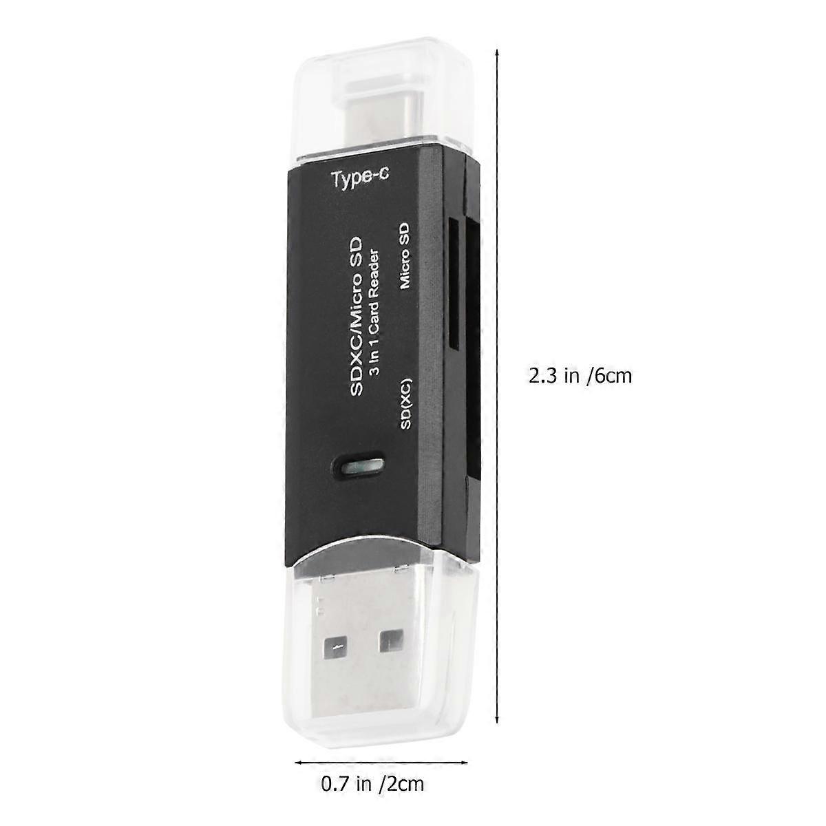 USB Type-C 3 in 1 Card Reader for Phone and Computer Black for Data Transfer 1Pack