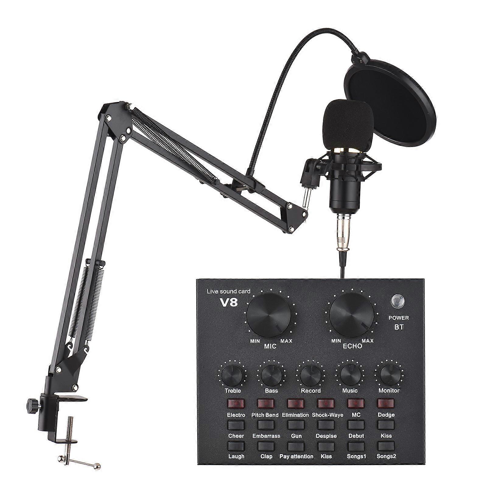 V8 External Live Sound Card Condenser Microphone Set Mini Sound Mixer Board for Live Streaming Karaoke Singing Music Recording with Adjustable Mic Sus