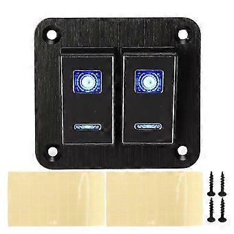 2 لوحة تبديل العصابة الروك للماء ON OFF الأزرق بإضاءة خلفية سبائك الألومنيوم بأكسيد أسود مصقول لشاحنة قارب السيارة RV