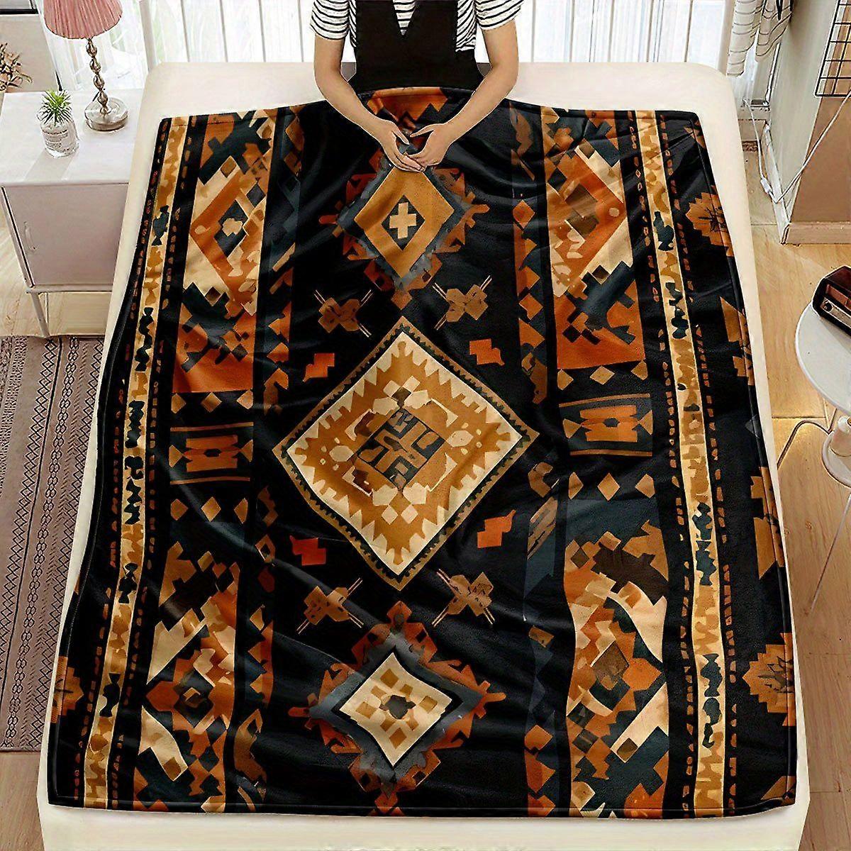 Vibrant Aztec-Inspired Polyester Throw Blanket - Soft Flannel, Colorful Geometric Patterns, Perfect for Bed, Home, Offic-OLKJS235