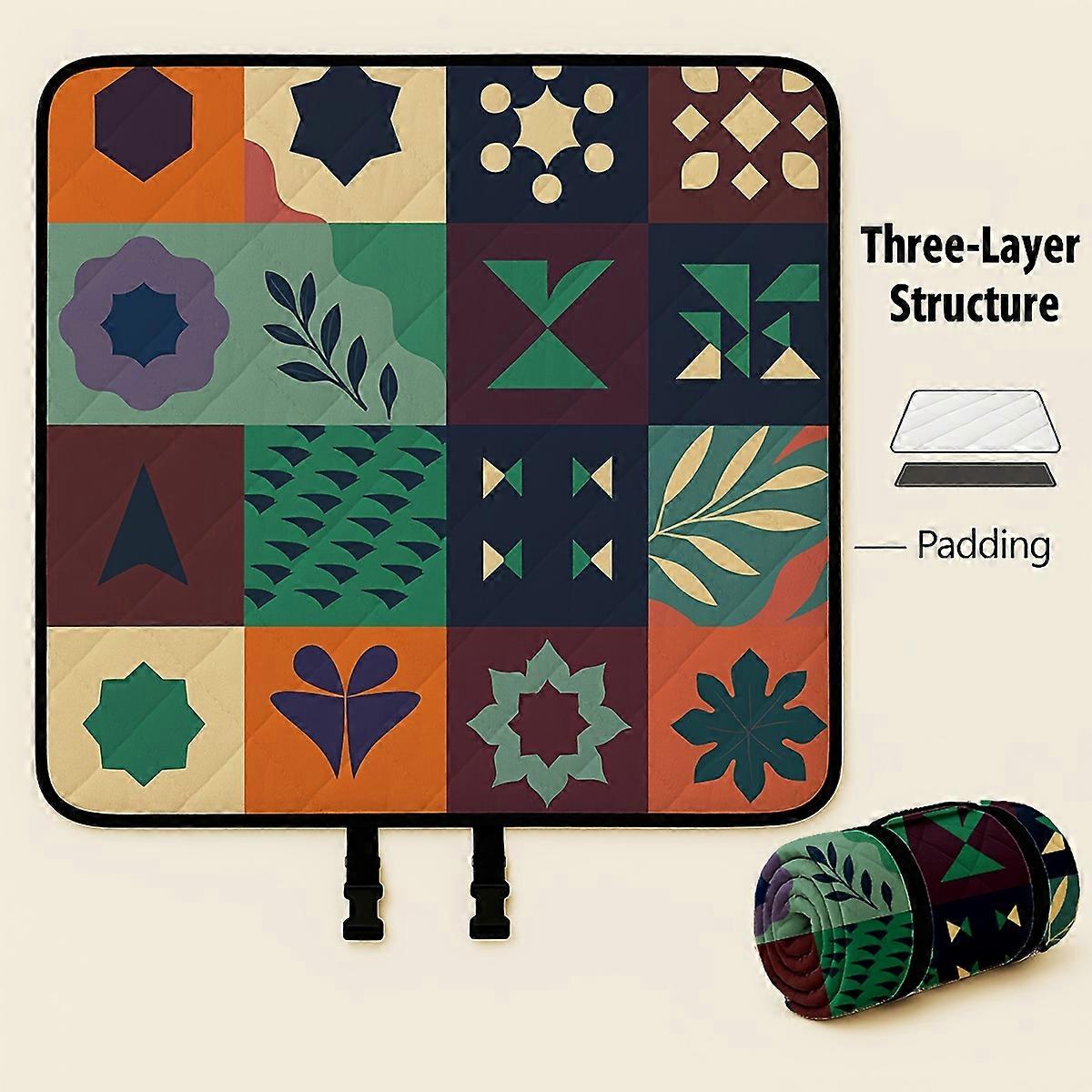 [Vibrant Picnic Blanket] Large Soft Padded Foldable Picnic Blanket | 78x78 Inches, Three-Layer Design, Colorful Floral