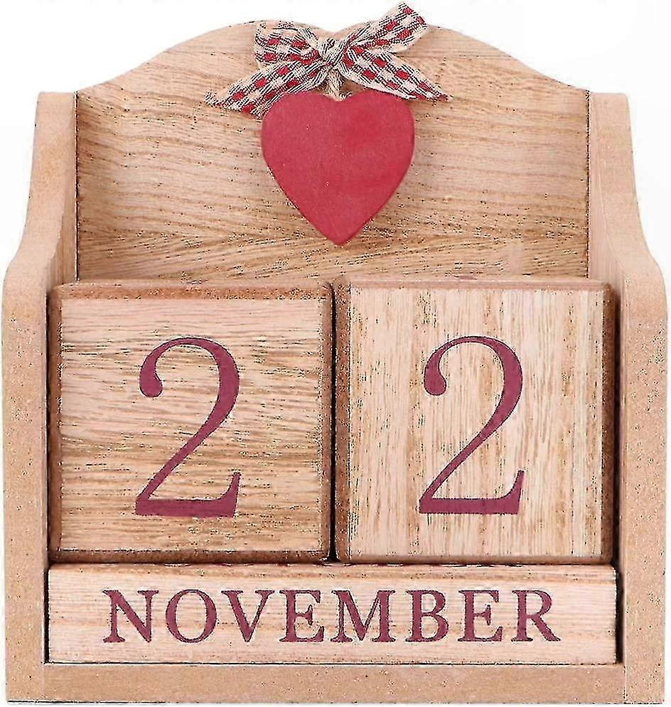 Vintage Desktop Perpetual Calendar with Wooden Blocks for Month and Date Display