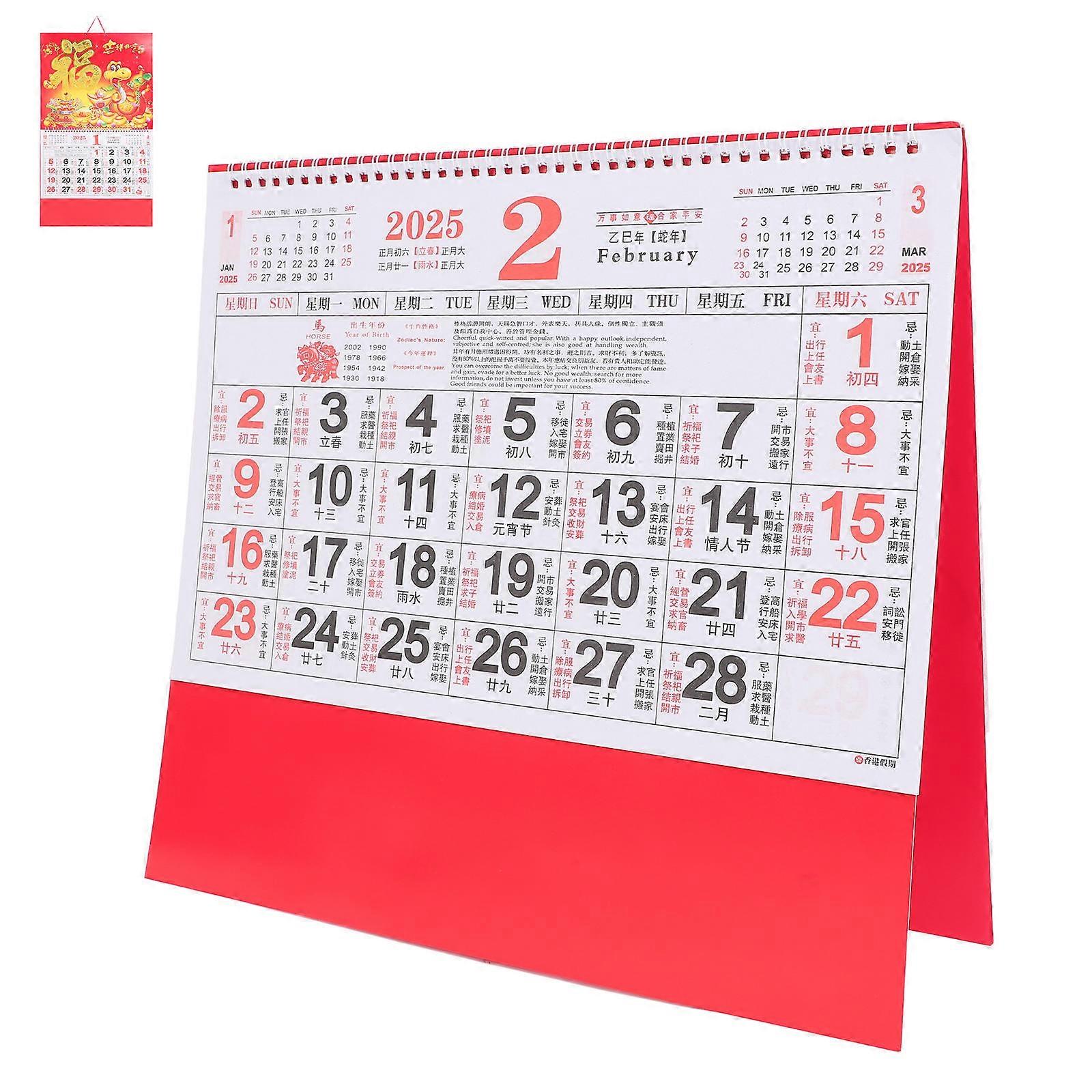 Vintage Lunar Calendar Hanging Calendar for Countdown Use with Chinese Fu Design