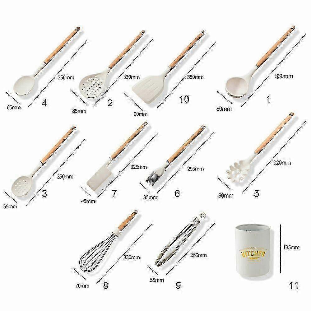 w 10-piece Set Silicone Utensils Wooden Handle Non-stick Spatula Cooker Kitchenware Tool
