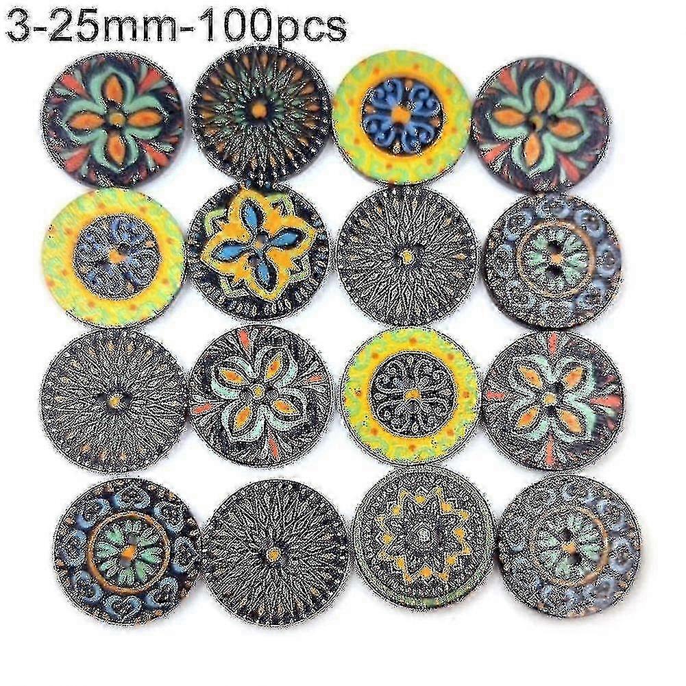 w 100 Pcs Bohemian Style Retro Pattern Round Shape Wooden Buttons Clothing Decor