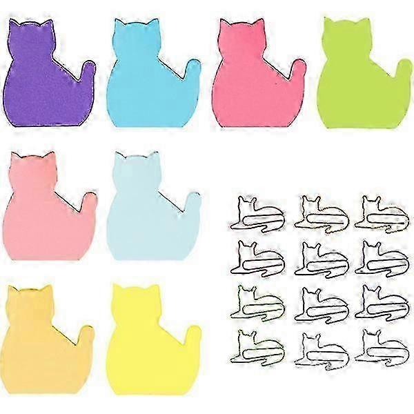 w 240 sheets (8 blocks) cat sticky notes, cat-shaped creative stationery set sticky notes with 12 random colors
