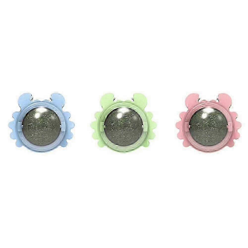 w 3pcs Catnip Wall Ball Toys Edible Licking Toy Chew Toy Teeth Cleaning Bite Toy Rotatable Indoor Toy
