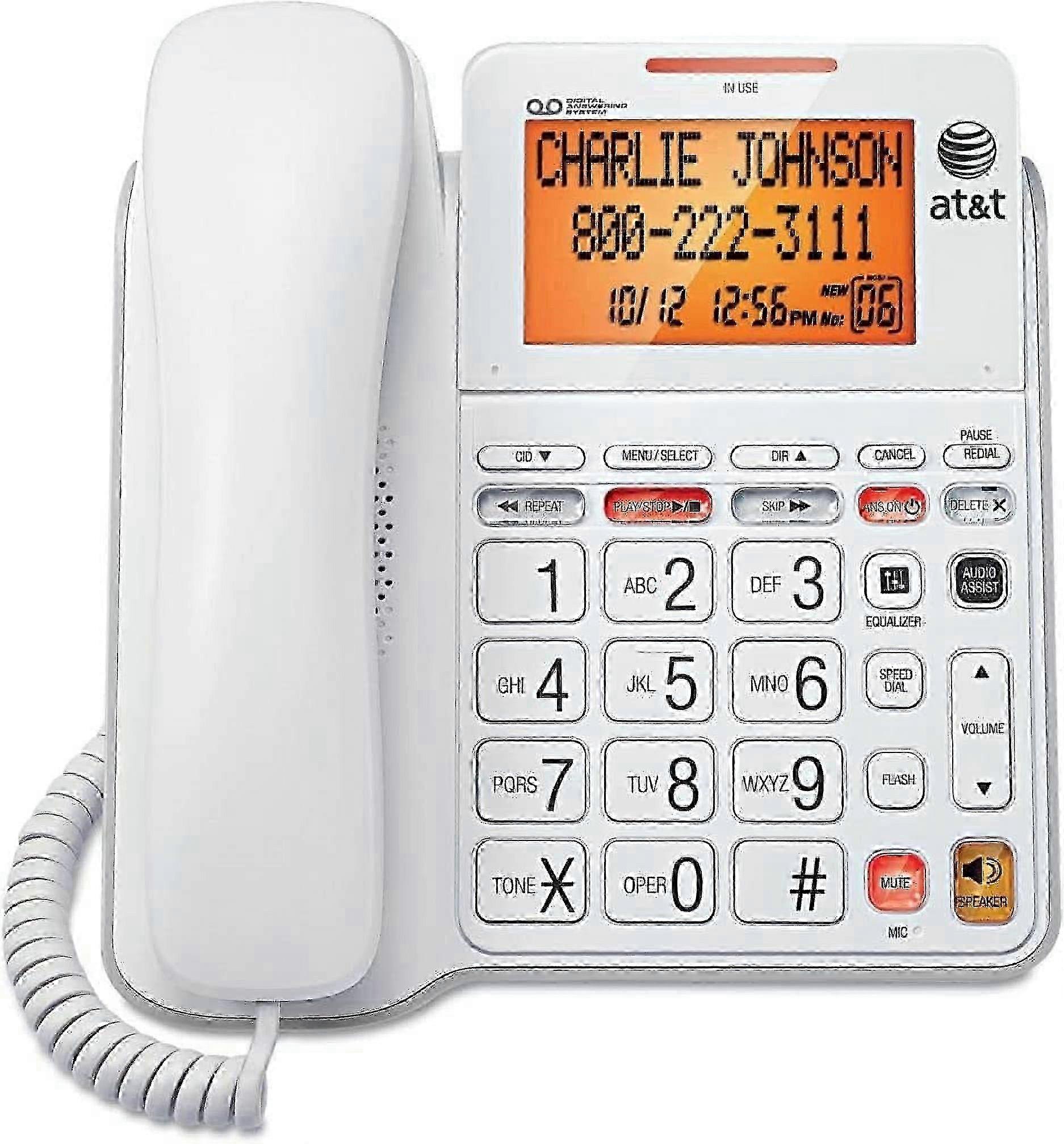 w AT&T CL4940 Corded Answering System with Backlit Display, White. Compatible with caller ID/call waiting, speakerphone, mute, redial.