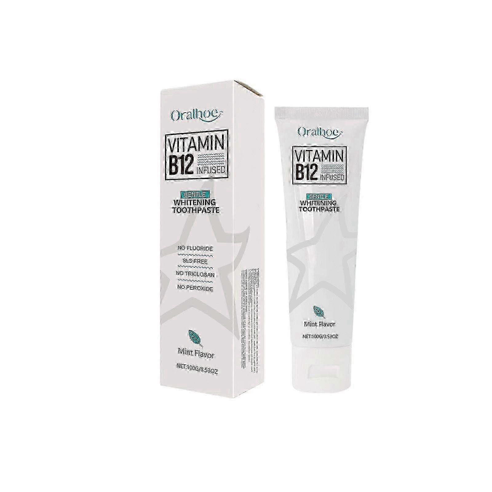 Vitamin B12 Whitening Toothpaste, Fluoride-Free Formula for Sensitive Teeth, Gentle and Effective Formula, Mint Flavor Creamy texture, easy to apply. Contains vitamin B12, cares for the mouth. Suitable for daily oral care. Produces rich foam and cleans thoroughly. Note: Due to the light and screen setting difference, the item's color may be slightly different from the pictures. Please allow slight dimension difference due to different manual measurement.