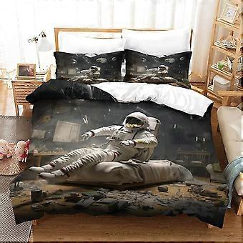 W364 3 Piece Astronaut Comforter Set 3D Travelling in Space Printed Bedding Comforter Set with Zip Closure for Girls, Super Soft Microfibre Bedding M3