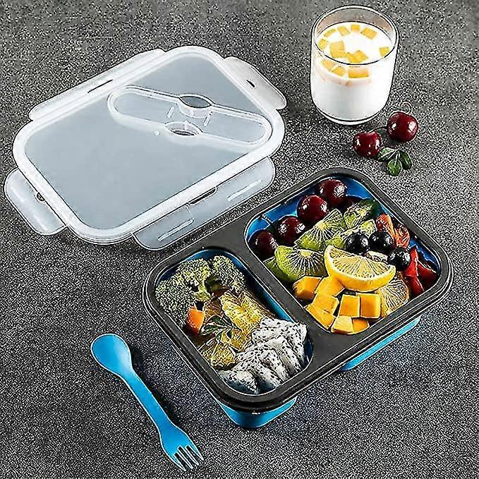 Wabjtam Collapsible Stacking Silicone Lunch Boxes With Spoon & Fork, 1100ml/2-compartment Portable Bento Storage Containers For, Gift, Food, Microwave