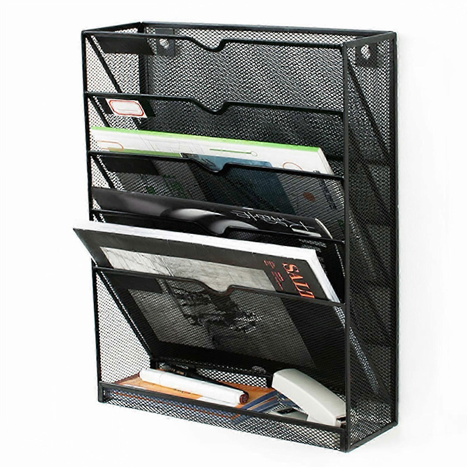 Wall File Organizer 5 Tier Vertical Mount Black with Glossy Edges and Hanging Hole for Office Use