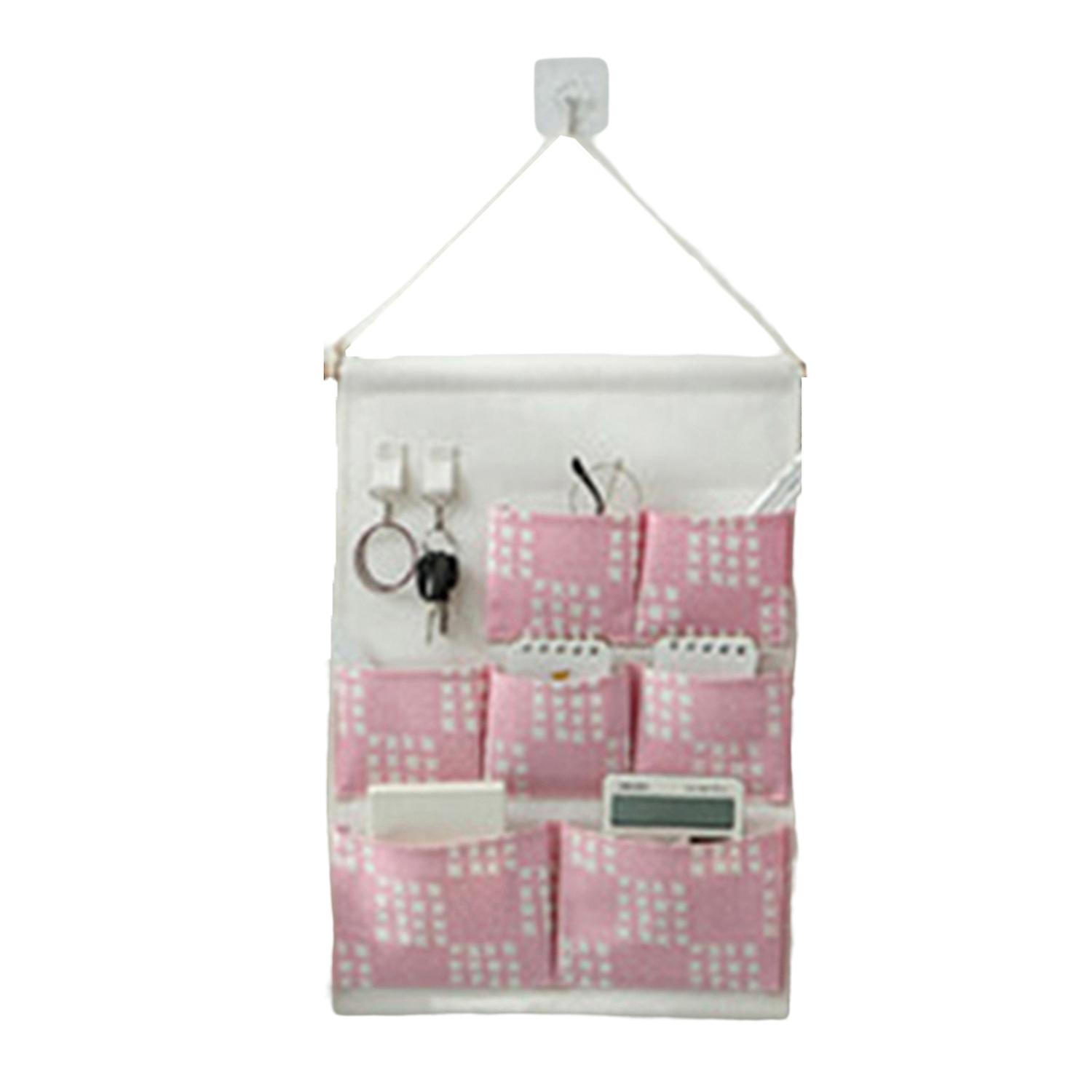 Wall Hanging Bag Multiple Pockets Cartoon Pattern Lanyard Design Washable Cotton Cosmetics Toy Key C