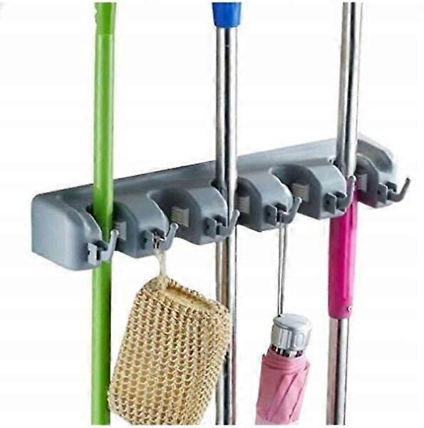 Wall-mounted tool rack, made of gray plastic, suitable for different handle thicknesses