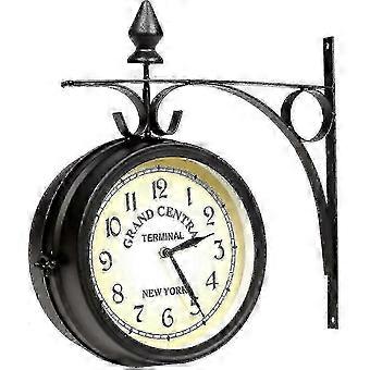 "Wall-Mounted Wrought Iron Garden Clock with Station Style: 2-Sided Handcrafted Grand Central Terminal Clock"