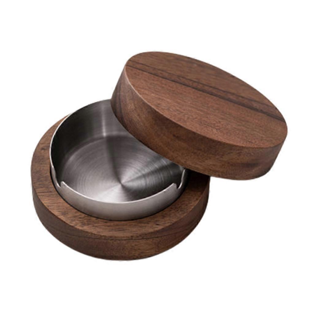 Walnut Wood Ashtray with Lid Wind Proof Organization for Case Container
