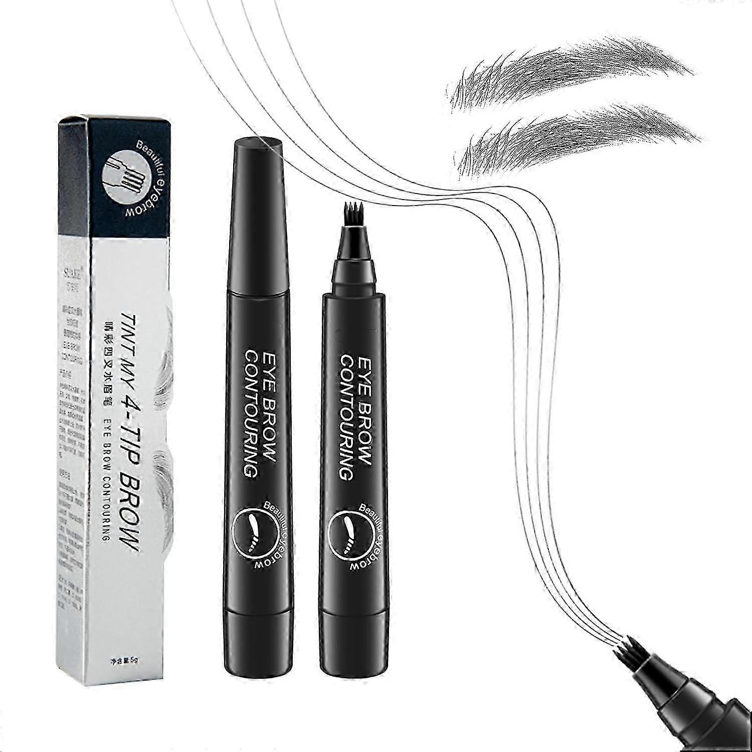 Waterproof Microblading Eyebrow Pencil with 4-Prong Tip for Natural Looking Brows, 2-Pack