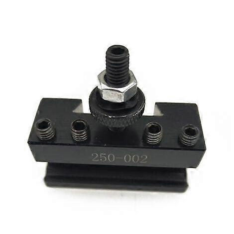 Quick change tool holder is a main accessory of machine tool, it consists of tool holder and many kinds of tool holders, according to the processing requirements of workpieces, the corresponding tool holders are selected to finish cylindrical facing, end facing, cutting, drilling, boring, boring, as well as other processing. It realizes to mount the tool outside the machine tool, it has quick tool exchange, high precision, strong rigidity, etc. It is satisfactory accessories in place of square turrets. Features: Accuracy: Designed to ensure repeat accuracy. Quickly and easily installed on a motor lathe, bench or lathe for a wide range of operations. M-10 stud size and perfect for most mini machines, although modifications may be required for some machines (sleeve or a new center rod for a small hole may be required). Reduce setup time: Instant change from one operation to another. Fully interchangeable with Aloris, Dorian, Phase II, Yuasa, and most other manufacturer components. All working parts are precise and hardened. Completely sealed for maintenance-free operation. Rotation: The unmatched rigidity of this tool post and holder ensures smoother turning without chatter or vibration. Drilling: Allows you to drill with the power of your machine, instead of manual work or tailstock. The hard, easily centered, cuniform tool post design. Specifications: Material: Steel Color: Black Lathe Swing: 6-9" Application: Turning Tool Use: CNC Machine Tool Accessories Type: 250-000, 250-001, 250-002, 250-004, 250-007, 250-010 (Optional) Tool Capacity: 250-000: 1/2" Cuniform type tool post 250-001: 1/2" turning tool holder 250-002: 1/2" boring, turning tool holder 250-004: 3/8" and 1/2" heavy duty boring bar holder 250-007: 1/2" parting blade tool holder 250-010: 1/2" knurling and turning tool holder Package Size: 145*80*100mm 55mm / 5.7 * 3.1 * 2.2in Package Weight: 250-000: 739g / 1.6lb 250-001: 159g / 5.6oz 250-002: 157g / 5.5oz 250-004: 367g / 12.9oz 250-007: 243g / 8.6oz 250-010: 271g / 9.6oz Customs: 250-001: Quick tool change holder for lathe cutting tool bits, range up to 1/2 inch. This holder is suitable for working with Cuniform type 250-000. 250-002: V groove holding round shank boring bars and tools, as well as square tool bits for machine end face, external, cutting, drilling, etc. 250-004: Use straight shank drilling and boring, reaming, etc., equipped with a split sleeve to accommodate a small diameter boring bar. It grasps extreme rigidity. Smooth cutting, no chatter. 250-007: Use square tool to make slot off cutting, etc. 250-010: It can be used for knurling, if the square tool is used, it can process end face, extered cutting, boring, etc. Packing list: 1 * Tool post / tool holder
