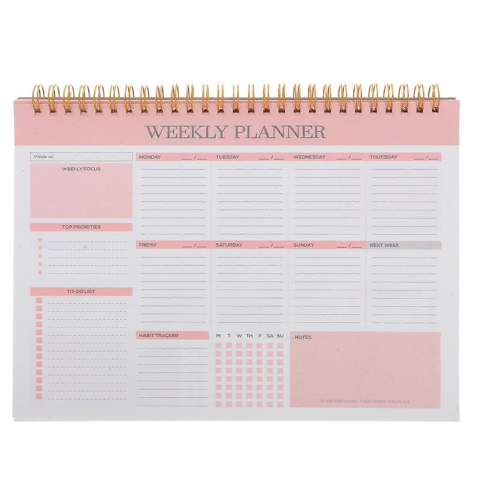 Weekly Planner Notebook for Task Management 1 Piece Pink Paper and Iron