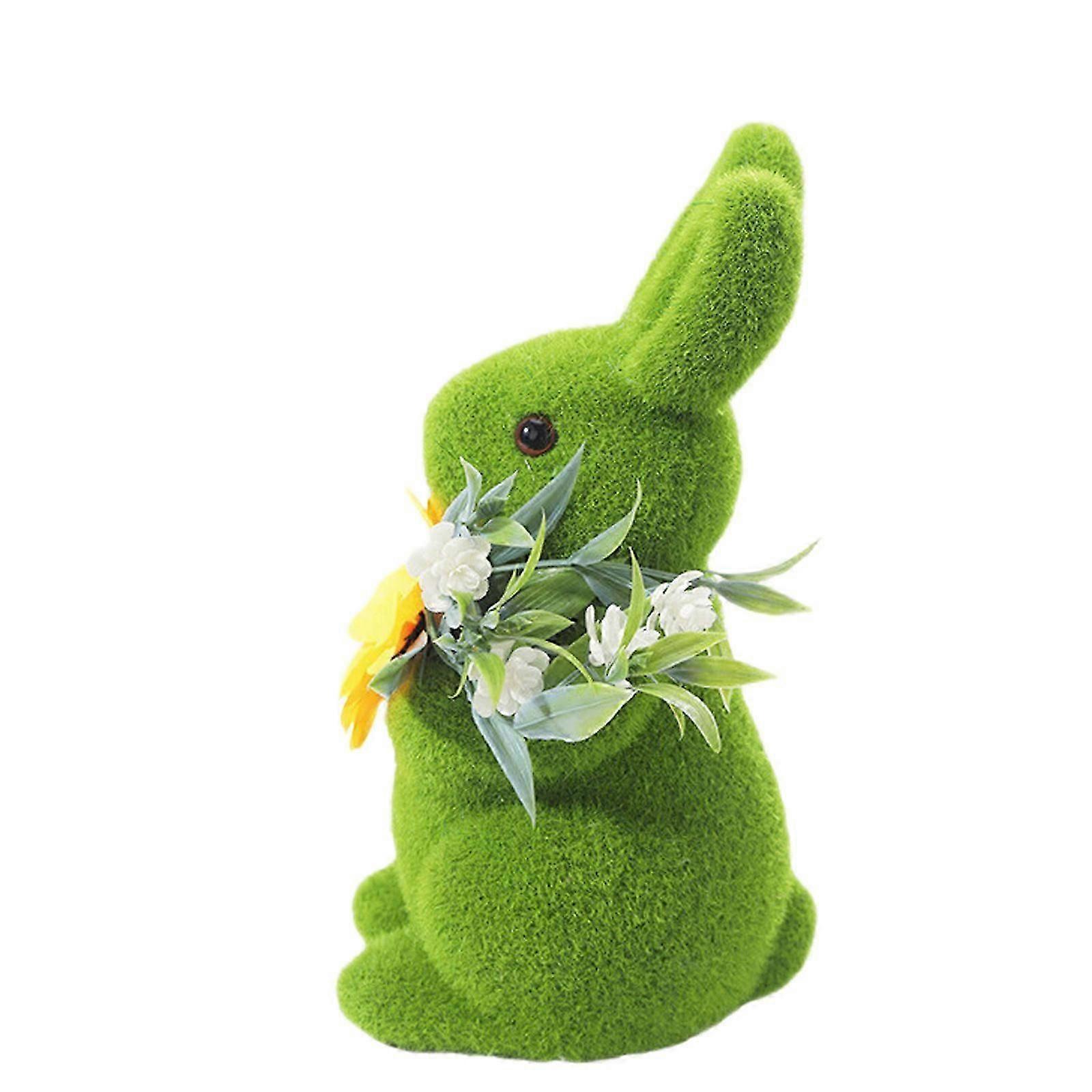 White Flocking Moss Rabbit Statue Easter Figurine Table Centerpiece